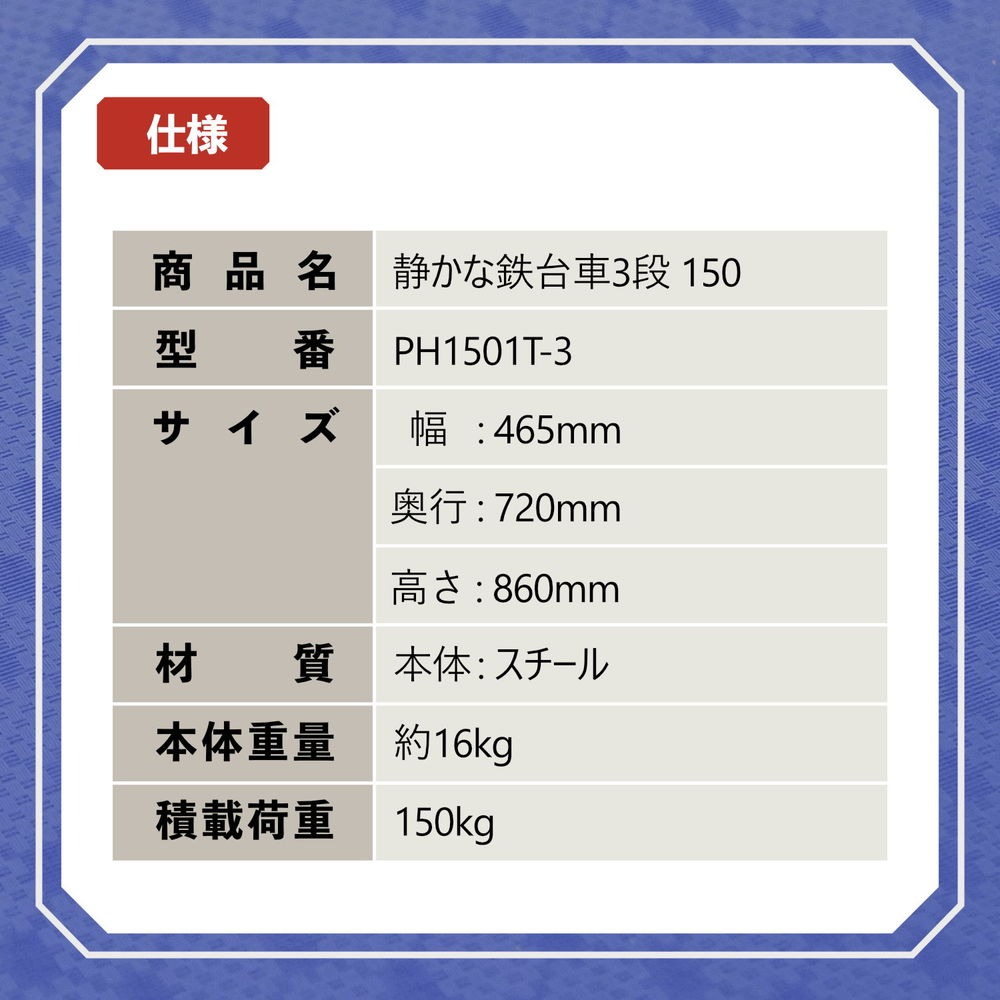 PH1501T-3 静かな鉄台車 3段 (耐荷重150kg)