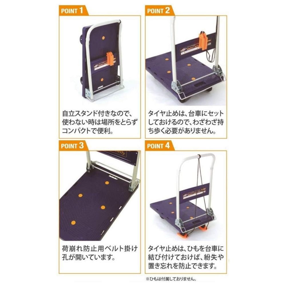 | サイズ | 積載荷重 : 120kg サイズ : 幅400×奥行660×高800mm 折りたたみ時 : 幅400×奥行630×高さ260mm ホイールサイズ : φ100mm |