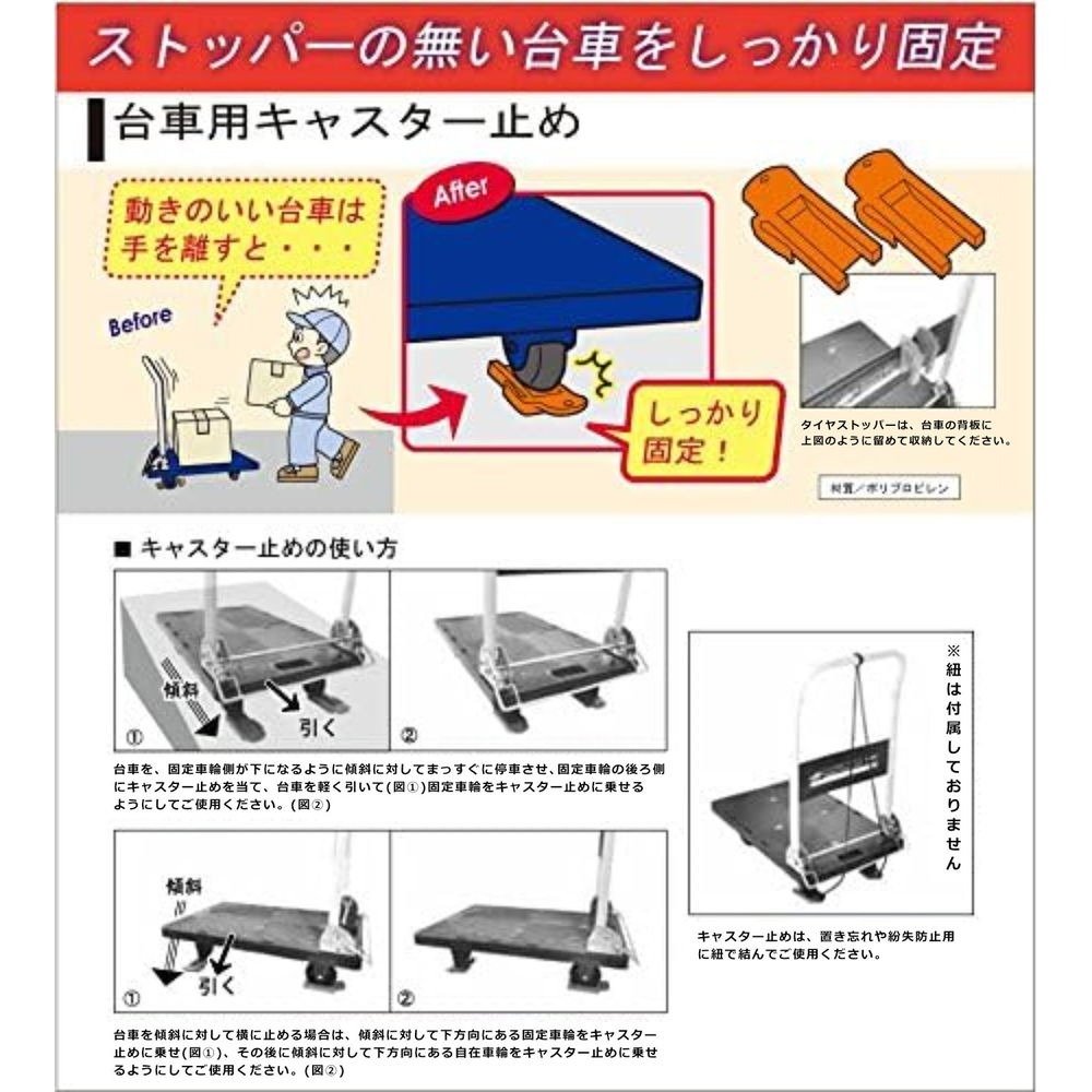 少しの傾斜でも台車が動いてしまう為、キャスターを固定するストッパーを付きです。