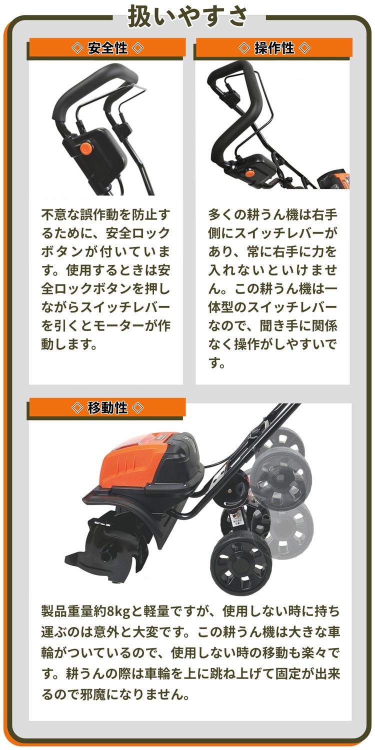 どこでも手軽に耕せる!コードレス電動耕運機