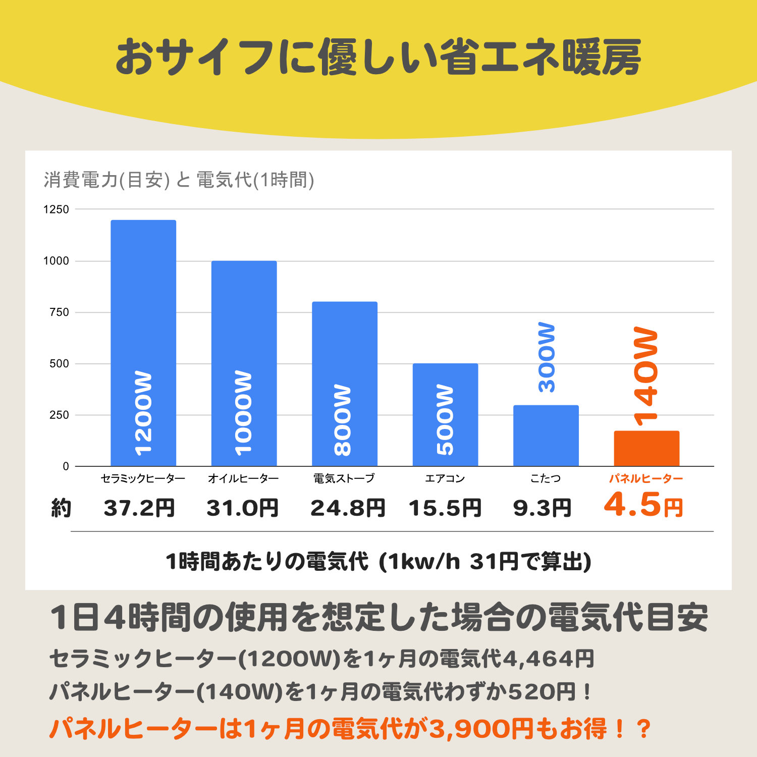 電気代わずか4.5円!おサイフに優しい暖房器具!