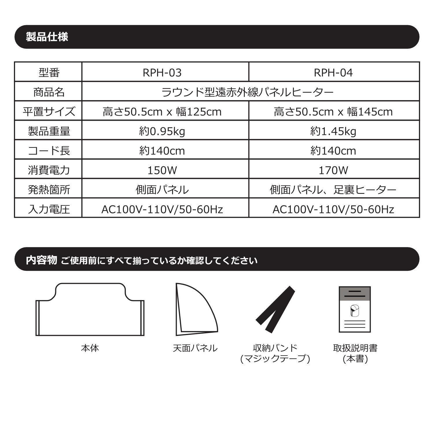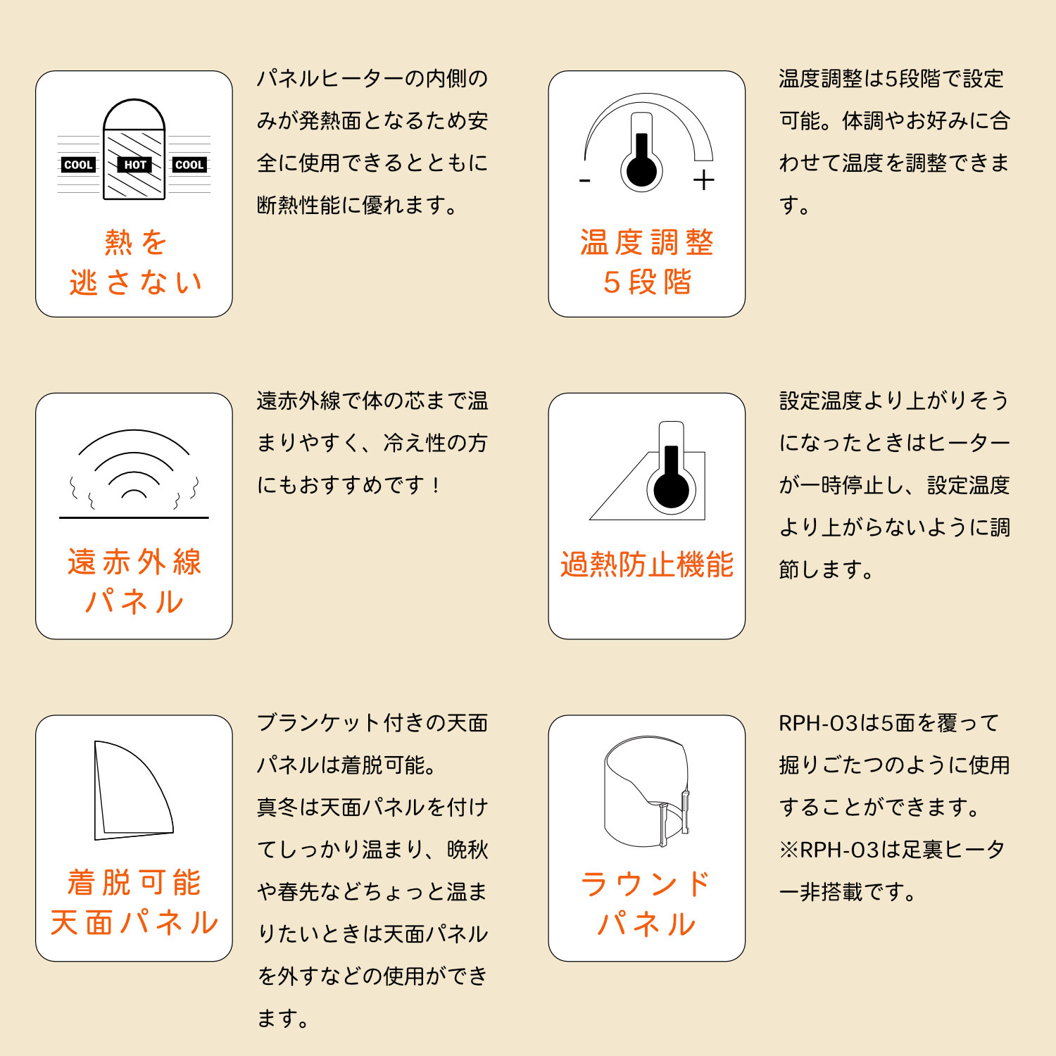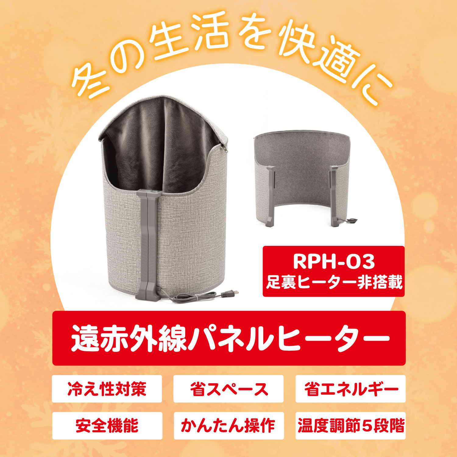 RPH-03 ラウンド式 遠赤外線パネルヒーター (足元ヒーター無し)