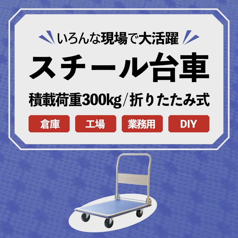 300kgまでの静止耐荷重に対応し重い荷物も安定して運べます。工場や倉庫やガレージなどで重量のある荷物を積むときに便利です。