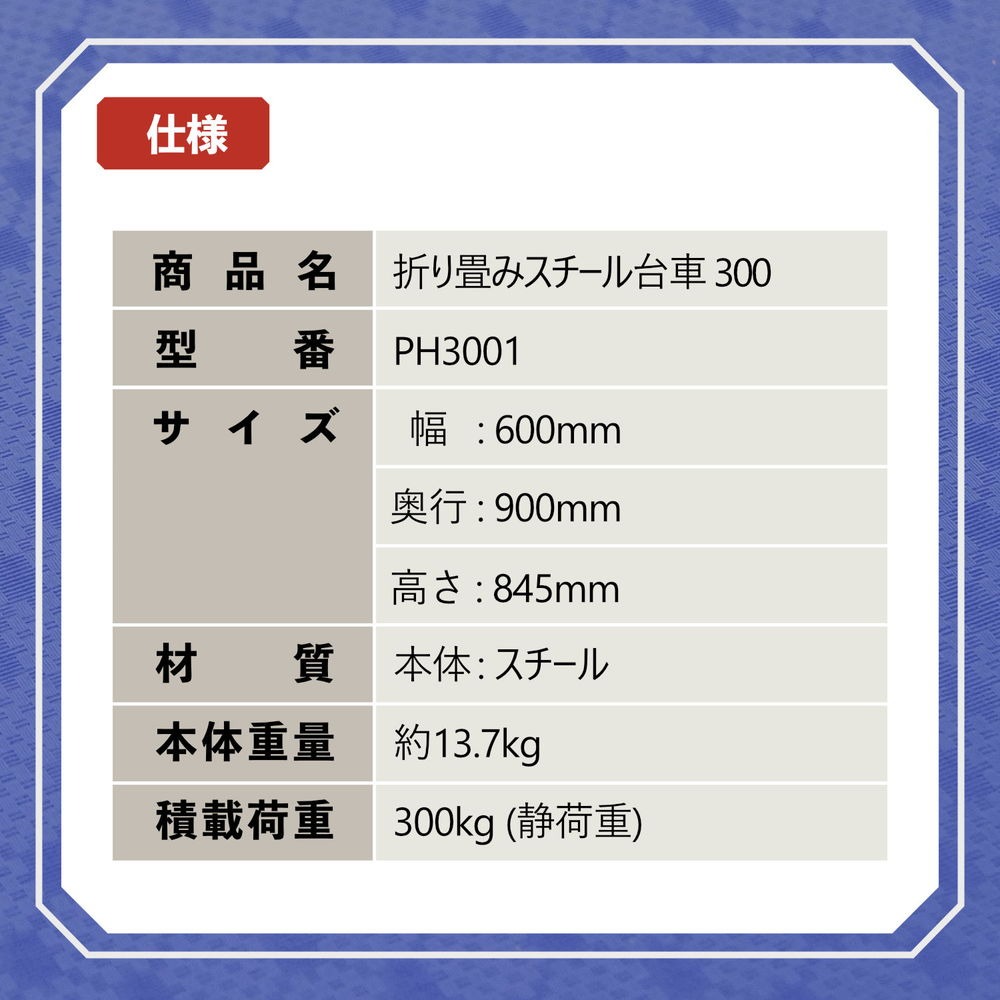 折りたたみ式 スチール台車 (PH3001) 最大積載荷重300kg対応!