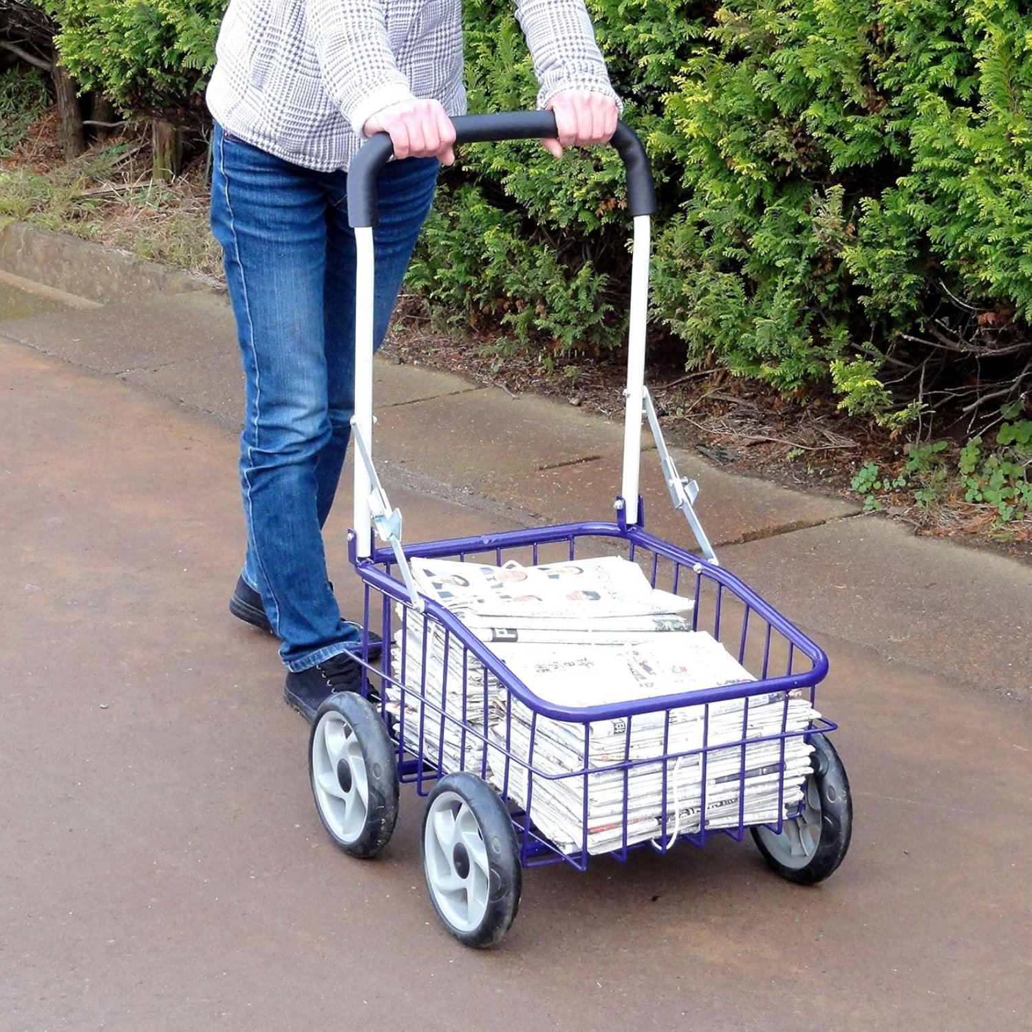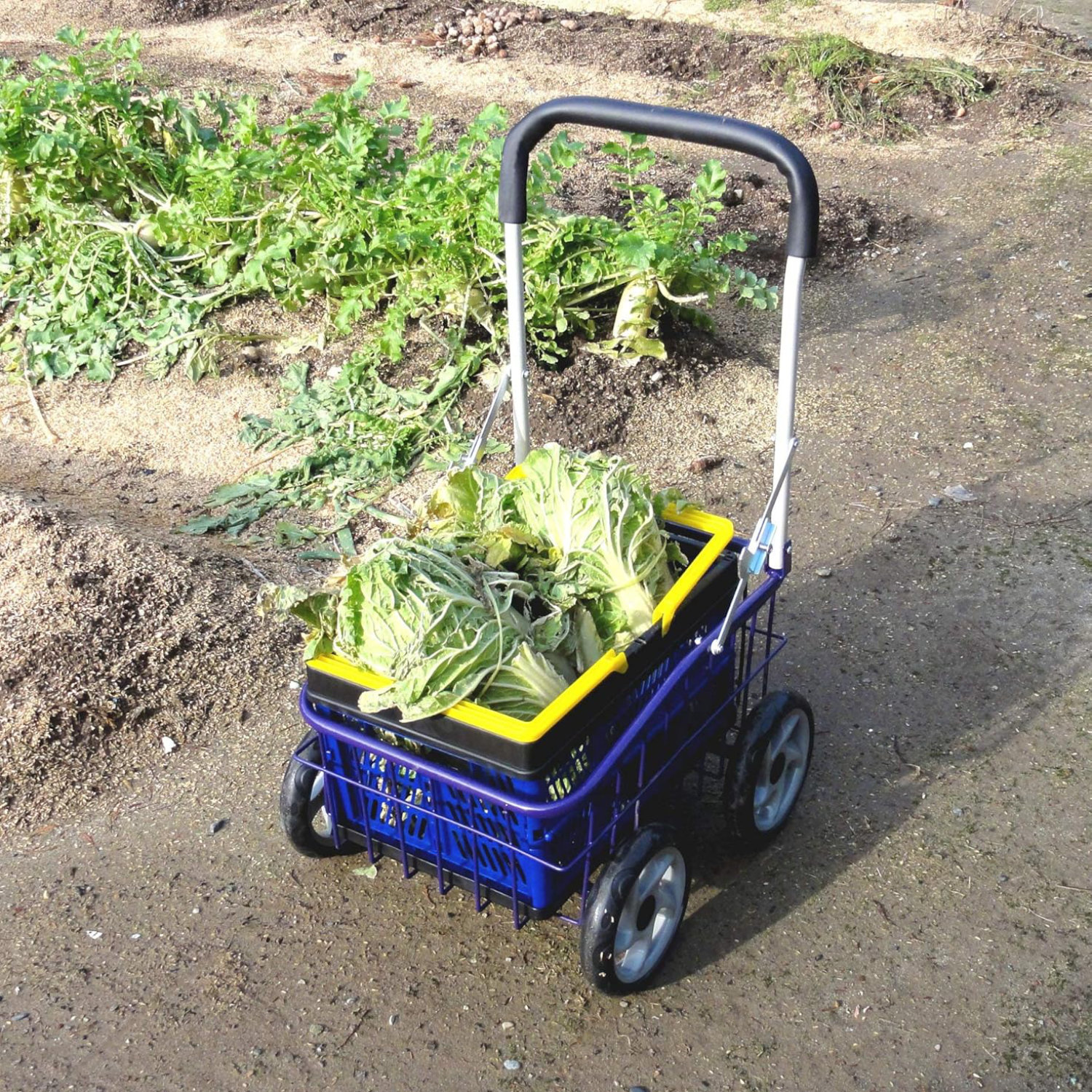 このキャリーワゴンは、荷台がかご型なので、ゴミ出しやお買い物、裏の畑での野菜の収穫など、ちょっとしたお出かけに大変便利です。