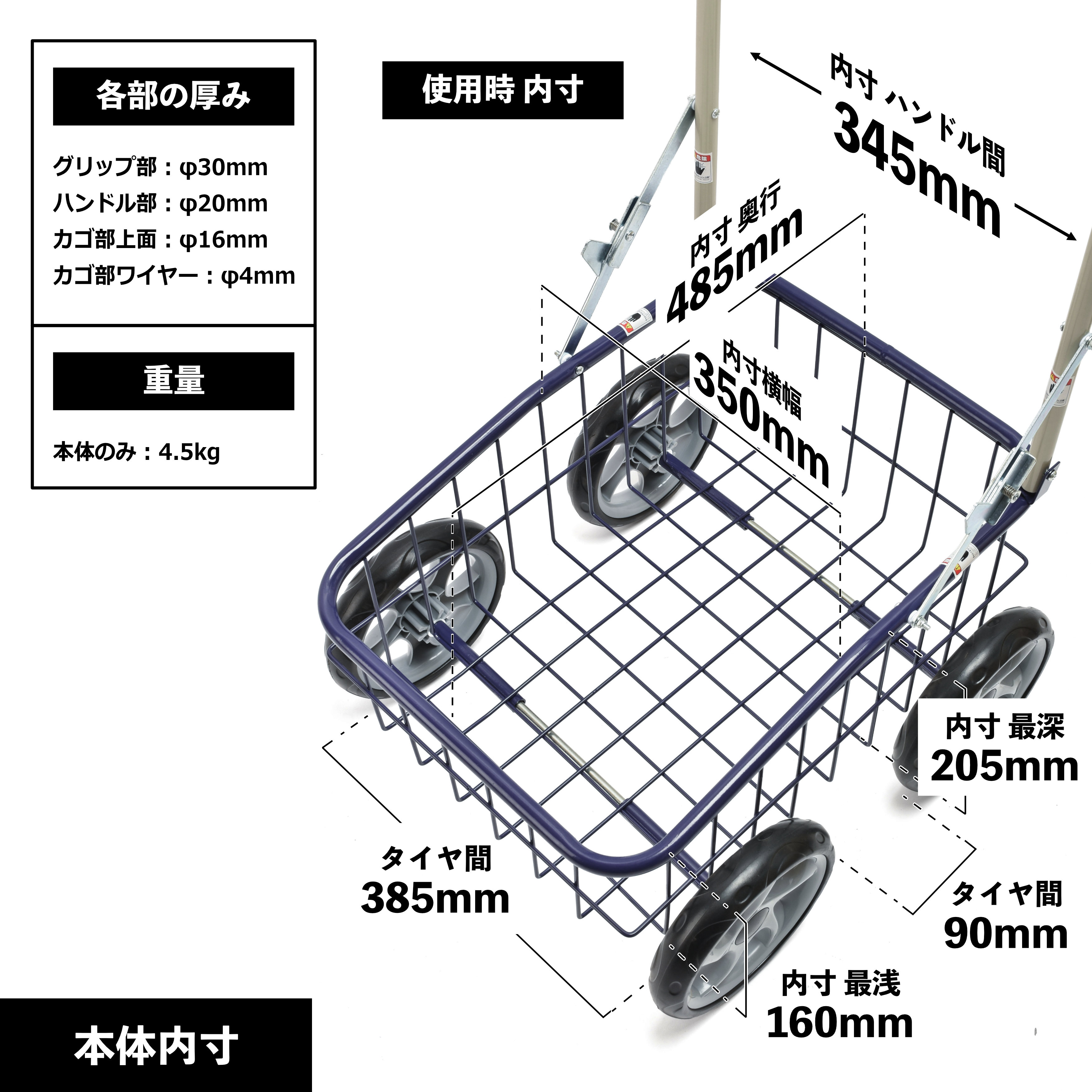 耐荷重(約) : 本体 : 30kg かご : 5kg