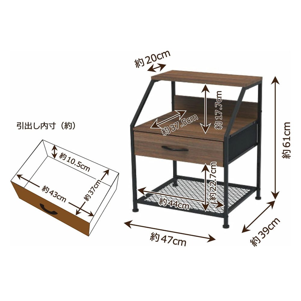 | サイズ | 製品サイズ(約) 幅47×奥行39×高さ61 cm 引出し内寸サイズ(約) 幅43x奥行37x深さ10 cm ×1杯 |