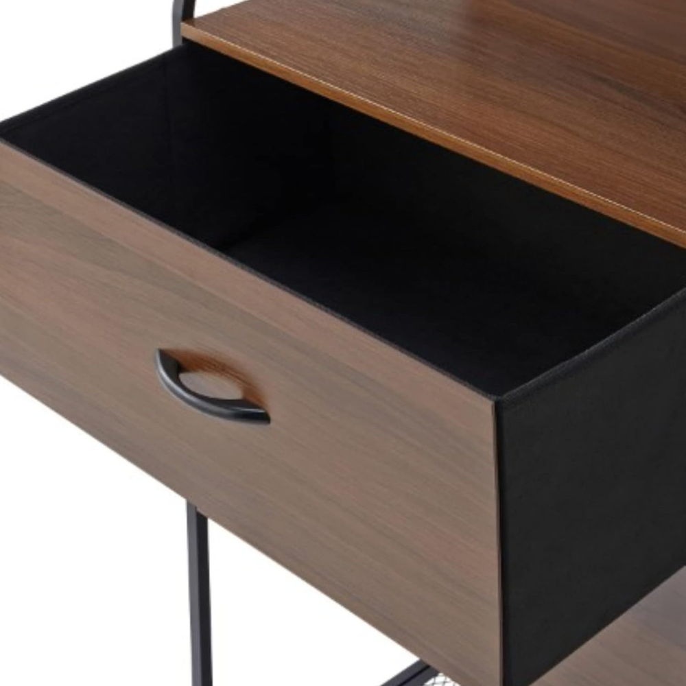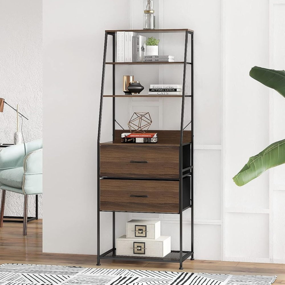 北欧で人気の梯子形状の収納家具です。細いアイアンと中天板のオープン部分が軽やかな印象を与える引出し付きのラックです。